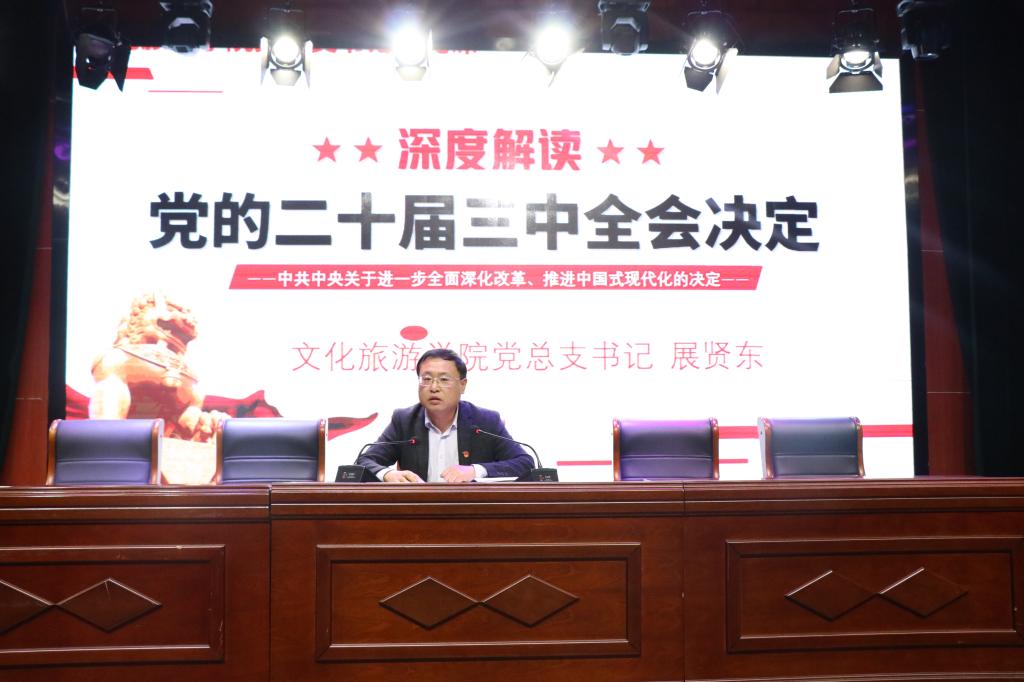 11月15日,在开元校区砺德厅举行第二十五期入党积极分子开班仪式,学院党总支书记展贤东为入党积极分子讲专题党课,深入解读党的二十届三中全会精神。展贤东强调,全体入党积极分子要深入学习习近平总书记在党的二十届三中全会上的讲话精神,深刻领会和把握进一步全面深化改革的主题、重大原则、重大举措、根本保证,深刻领悟“两个确立”的决定性意义,增强“四个意识”、坚定“四个自信”、做到“两个维护”,牢记使命担当,务实创新工作,敢于攻坚克难,为实现中华民族伟大复兴贡献青春力量。他希望全体入党积极分子要坚定不移听党话、跟党走,弘扬党的光荣传统,刻苦学习、锐意进取,努力学好专业知识和技能,在青春的赛道上跑出当代青年的最好成绩。