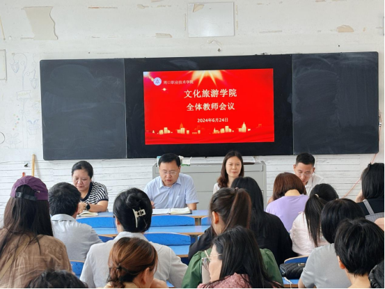 6月24日上午,pp电子游戏平台网站在4220教室召开全体教师会议,总结学院上半年工作情况,安排部署近期重点工作,开展2023-2024学年度师德师风考核民主评议。pp电子官网党总支书记展贤东、院长史丽珍,副院长于慧娟、李炯,教务办主任马淼、综合办主任石永丽和全体教师参加本次会议。会议由史丽珍主持。