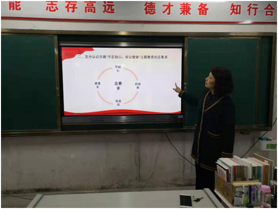 教工支部书记袁玉红做了“爱岗敬业,教书育人”为题的讲课,她动员大家:作为新时期的教师,我们要用师爱滋润学生,用生命承载教育,用平凡演绎伟大,用对党的教育事业的无限忠诚谱写出感人的篇章。