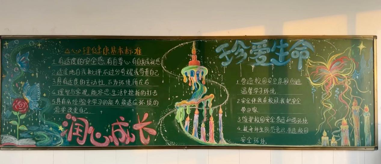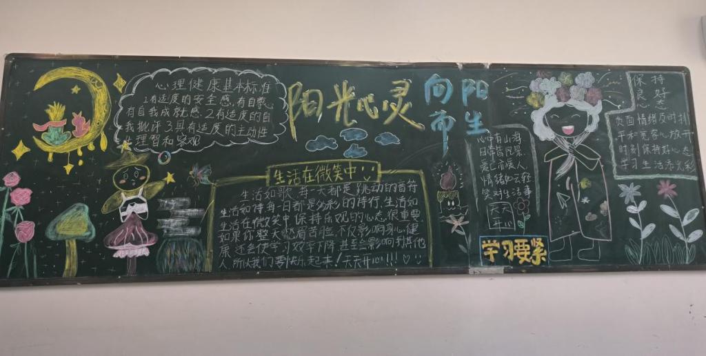 活动以“关爱自我,阳光同行”为核心主题,各班学生集思广益、分工协作,充分发挥创意与才华。从版面布局的精心规划,到色彩搭配的反复斟酌,再到内容素材的筛选整合,每一个环节都凝聚着同学们的巧思。黑板报上,既有情绪调节小技巧、压力缓解小贴士等实用心理知识,也有温暖励志的短句、生动形象的漫画插画,还有贴合大学生活的心理小故事分享。一块块黑板报主题鲜明、图文并茂,不仅展现出同学们扎实的绘画与排版能力,更传递出积极向上的心理正能量。