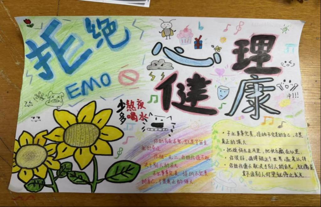 本次活动以“绘心聚力护航成长”为主题,自启动以来,得到了全院学生的热烈响应和积极参与。同学们充分发挥想象力与创造力,将心理健康知识与艺术设计巧妙融合。在一张张手抄报上,色彩明快的插画、温暖治愈的文字、条理清晰的心理小贴士相映成趣,有的聚焦情绪管理小技巧,有的分享人际交往的暖心法则,有的科普心理调适的实用方法,每一份作品都饱含着同学们对心理健康的独到理解,也传递出积极向上的心理正能量。