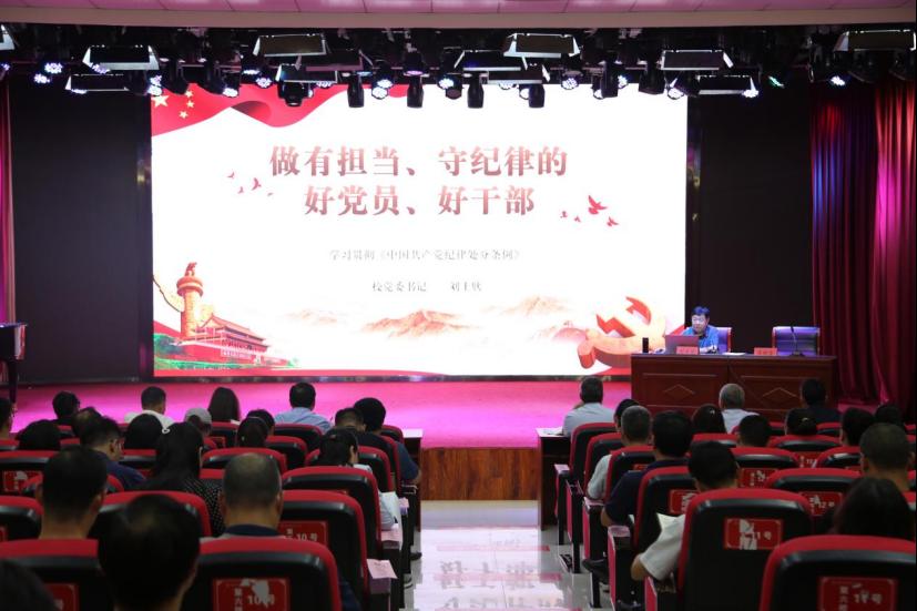 为深入学习贯彻习近平总书记关于全面加强党的纪律建设的重要论述,切实推动党纪学习教育走深走实,教育引导党员干部和教师学纪知纪明纪守纪,6月28日,校党委书记刘士欣教授讲授党纪学习教育专题党课。pp电子游戏平台网站全体党员参加学习,校党委副书记李明臣主持。