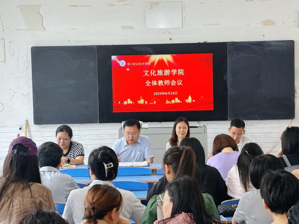 6月24日上午,pp电子游戏平台网站在4220教室召开全体教师会议,总结学院上半年工作情况,安排部署近期重点工作,开展2023-2024学年度师德师风考核民主评议。pp电子官网党总支书记展贤东、院长史丽珍,副院长于慧娟、李炯,教务办主任马淼、综合办主任石永丽和全体教师参加本次会议。会议由史丽珍主持。