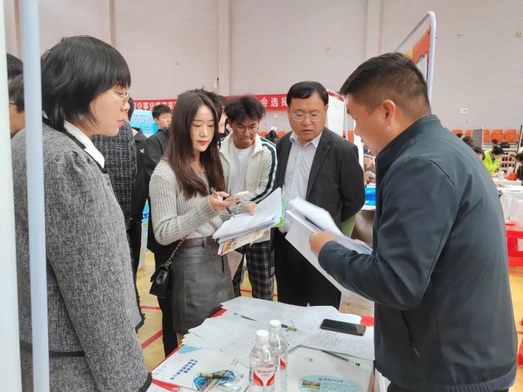 pp电子官网党总支书记展贤东、副院长于慧娟、就业指导员李敬敏深入双选会现场,了解就业市场和专业需求情况,主动与本学院专业结合紧密的行业企业进行沟通,为建立长期联系,开展“访企拓岗促就业”专项行动奠定了基础。