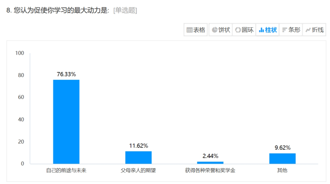 11.62%的同学认为是不辜负父母亲人对自己的期望