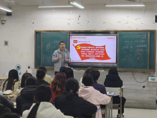 培训还邀请马克思主义学院副教授范文婷、孟秀芹进行专题授课。范文婷以《深刻认识习近平新时代中国特色社会主义思想的科学体系》为题,孟秀芹围绕《深入学习习近平总书记关于党的建设的重要思想》展开讲解。学生支部组织委员普俊则分别讲授了《党章学习——深入了解党的性质、宗旨和最高理想》《赓续红色血脉,传承精神密码——伟大建党精神》及《青春心向党,奋斗正当时》等课程。教学内容紧扣习近平新时代中国特色社会主义思想、党的基本理论、组织制度与党员义务等重点,结合案例分析与互动交流,帮助学员明晰入党程序与行为规范,引导大家在思想和行动上同党中央保持高度一致。