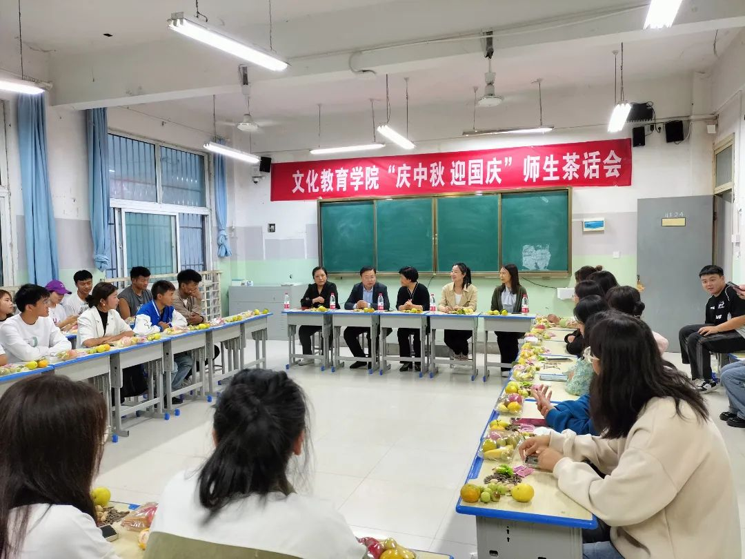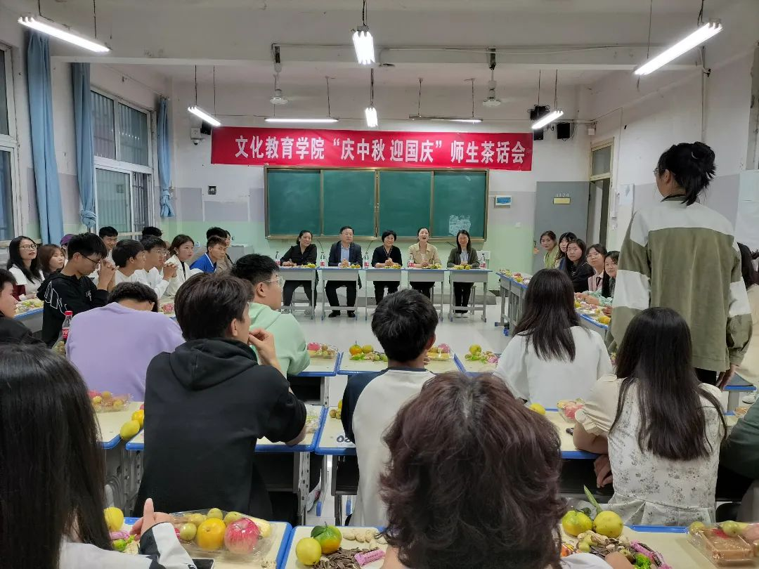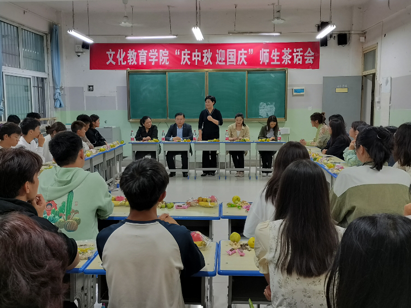 为弘扬中华优秀传统文化,营造欢乐祥和的节日氛围,让文化教育学院留校新生度过一个温馨美好的中秋、国庆双节,9月28日下午,文化教育学院举办“庆中秋 迎国庆”师生茶话会。副校长于爱霞、学生处处长刘冬霞、文化教育学院党总支书记展贤东、院长史丽珍、副院长于慧娟、学管办主任普俊出席活动。