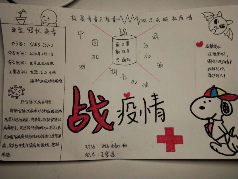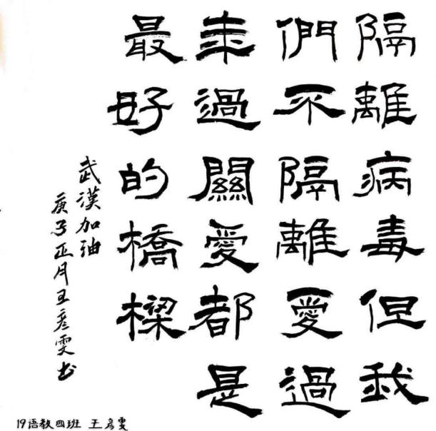 当前,新冠肺炎疫情形势依然严峻,全国人民都投入到这场看不到硝烟的抗疫战争,众志成城、共抗疫情!pp电子官网学子用不同方式展现坚决打赢疫情防控阻击战的信心、决心。展现出当代周职学子的青春担当。